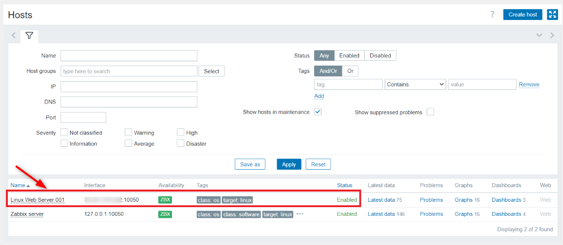 Zabbix Server can receive and display monitoring information by adding the host. The Linux template enables all essential metrics to monitor Ubuntu servers.
